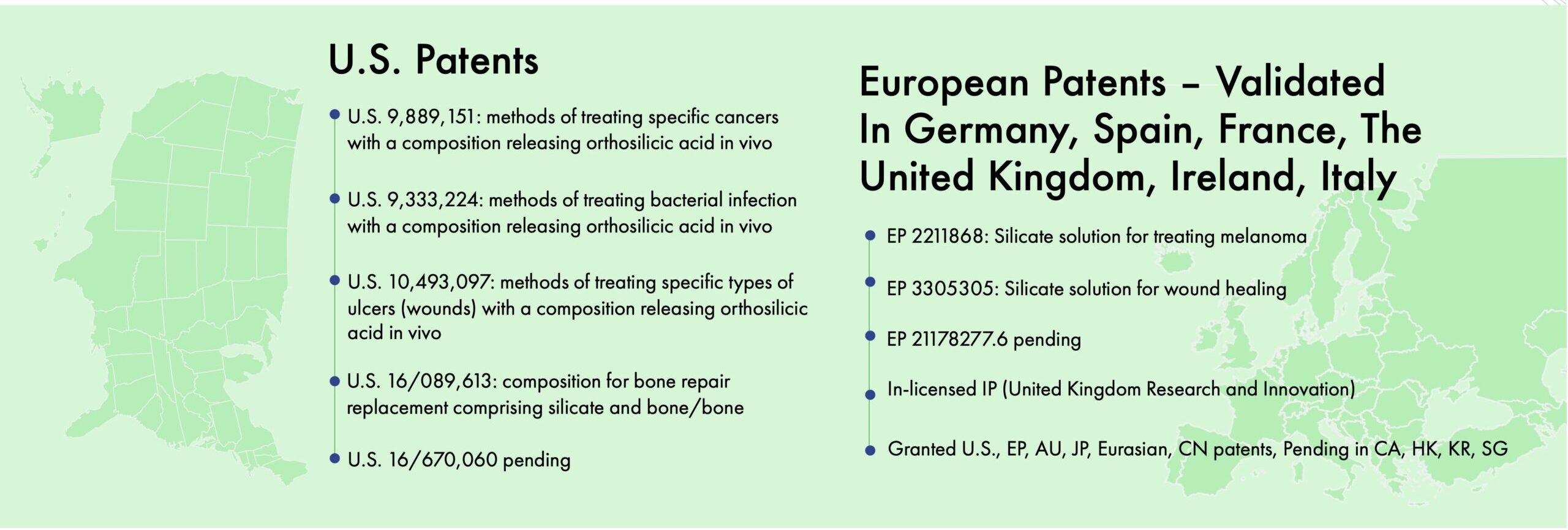 The portfolio consists of four issued and one pending U.S. patents, two issued and one pending European patents, as well as certain licensing agreements in conjunction with research developed by Cambridge University.